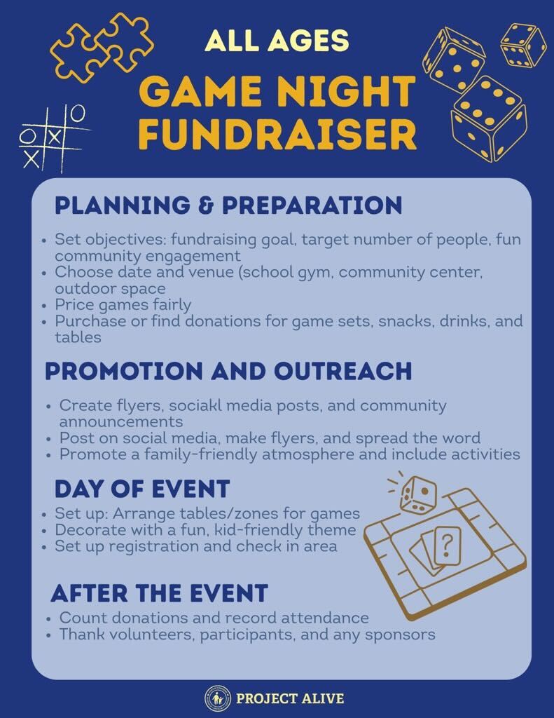 Are you interested in organizing a community fundraiser for Project Alive? Then check out our fundraising tool kits! These toolkits are designed to empower families and community members to create fun and engaging fundraising events that support Project Alive and raise awareness.