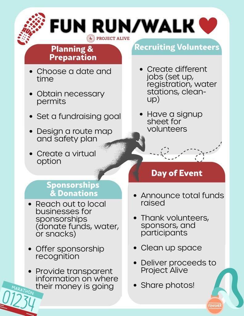 If you’re ready to get started on a fundraising event or need additional support, please reach out to us at give@projectalive.org.